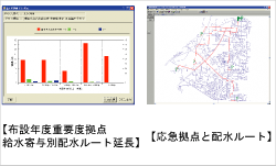 応急給水拠点までの配水ルートを抽出し、災害などの非常時にも対応できる配水ルートを確保できているのかなど、非常時での課題解決を支援します。活用例